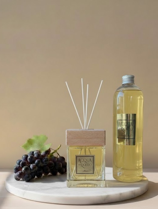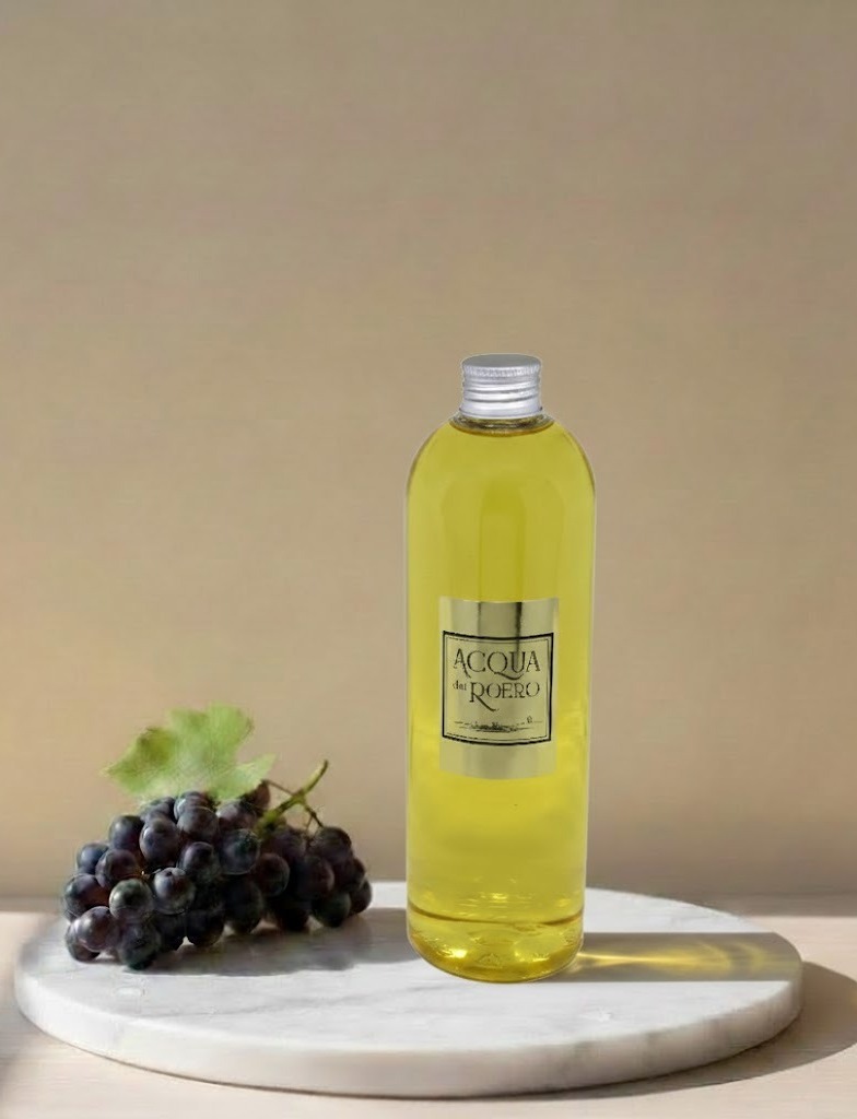 Rinnova la tua essenza e mantieni l'ambiente di casa profumato più a lungo grazie alla ricarica da 500 ml di profumazione al vino Roero Riserva.