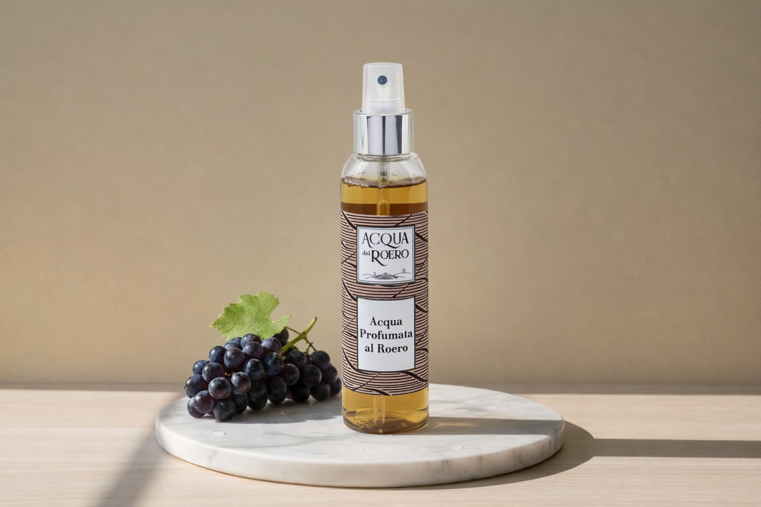 Lozione spray a base di Vino Roero Riserva, idrata, tonifica e ridona freschezza alla tua pelle.