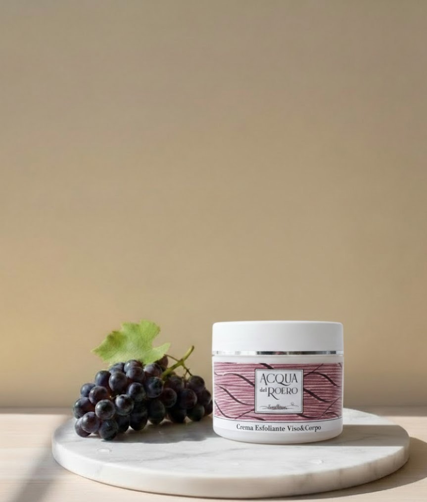 Coccola e nutri la pelle di viso e corpo con il trattamento esfoliante al vino Roero Riserva.